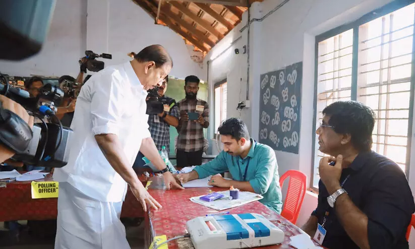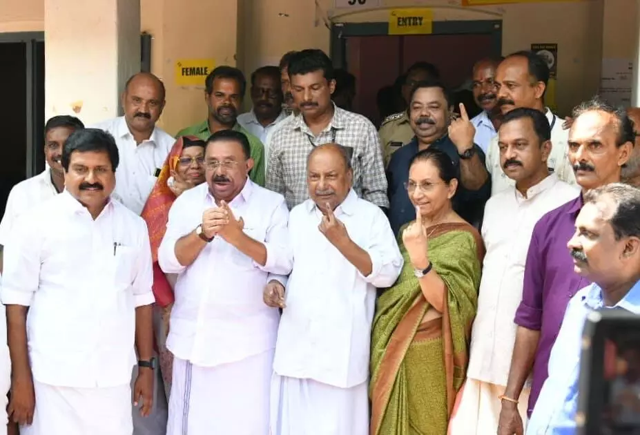 വടകരയിലെ യു.ഡി.എഫ് സ്ഥാനാർഥി ഷാഫി പറമ്പിലും എൽ.ഡി.എഫ് സ്ഥാനാർഥി കെ.കെ. ശൈലജയും വോട്ട് രേഖപ്പെടുത്തിയ ശേഷം