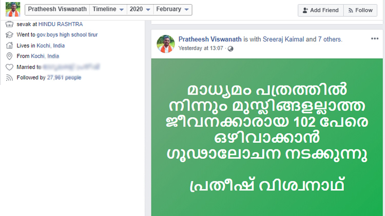 മതസ്പർധ വളർത്തുംവിധം ‘മാധ്യമ’ത്തിനെതിരെ പ്രചാരണം; പൊലീസിൽ പരാതി നൽകി
