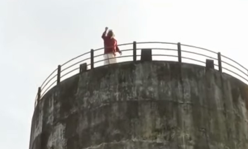 വാട്ടർ ടാങ്കിന് മുകളിൽ കയറി ആത്മഹത്യാ ഭീഷണി മുഴക്കി കപ്പലണ്ടി കച്ചവടക്കാരൻ; അനുനയ നീക്കവുമായി പൊലീസ്