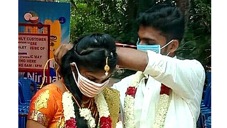 കോവിഡ് നിയന്ത്രണങ്ങളെ തുടർന്ന് പാസ് കിട്ടാതെ വരൻ വിഷമിച്ചതോടെയാണ് വധുവും കൂട്ടരും കാത്തുനിന്ന പാതയോരംതന്നെ വിവാഹവേദിയാക്കേണ്ടി വന്നത്. ഒടുവിൽ മുഹൂർത്തം തെറ്റാതെ, അതിർത്തികളെ ബന്ധിപ്പിക്കുന്ന നടപ്പാതയിൽ െവച്ച് ബന്ധുക്കളെയും നാട്ടുകാരെയും ചെക്പോസ്റ്റ് ഡ്യൂട്ടിയിലുണ്ടായിരുന്ന ഉദ്യോഗസ്ഥരെയും സാക്ഷിയാക്കി പ്രസാദ് ഗായത്രിയുടെ കഴുത്തിൽ മിന്നുചാർത്തി.