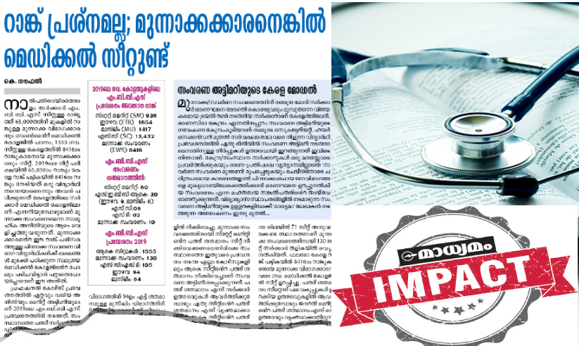 സ്റ്റേറ്റ് മെറിറ്റ് സീറ്റ് 50 ശതമാനമാക്കി ഇതര സംവരണവിഭാഗങ്ങൾക്ക് സമാനമായി മുന്നാക്ക സംവരണ സീറ്റ് വിഹിതം നിശ്ചയിക്കാനാണ് ആരോഗ്യവകുപ്പ് പ്രവേശന പരീക്ഷാ കമീഷണർക്ക് ഉത്തരവ് നൽകിയത്. പ്രോസ്പെക്ടസിൽ ഇതിനനുസൃതമായി ഭേദഗതി വരുത്തി ഉത്തരവിറക്കും. മുന്നാക്ക സംവരണ സീറ്റുകൾ കുറച്ചതോടെ ഇതര സംവരണ സീറ്റുകളുടെ എണ്ണത്തിൽ നേരിയ വർധന ഉണ്ടായിട്ടുണ്ട്.