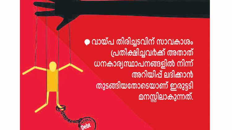 ചില ധനകാര്യ സ്ഥാപനങ്ങൾ വായ്പ കുടിശ്ശിക ഉടൻ അടക്കണമെന്നാവശ്യപ്പെട്ട് അറിയിപ്പ് നൽകുന്നുണ്ട്. വാഹന വായ്പയും ഗാർഹിക ഉപകരണ വായ്പയും എടുത്തവരാണ് കുടുങ്ങിയത്. ഇത്തരം വായ്പകൾ 99 ശതമാനവും അനുവദിച്ചത് സ്വകാര്യ, നവ തലമുറ ബാങ്കുകളും ബാങ്കിതര ധനകാര്യ സ്ഥാപനങ്ങളുമാണ്. മൊറേട്ടാറിയം മാനദണ്ഡം സ്വകാര്യ ധനകാര്യ സ്ഥാപനങ്ങൾ പാലിക്കുന്നില്ല.
