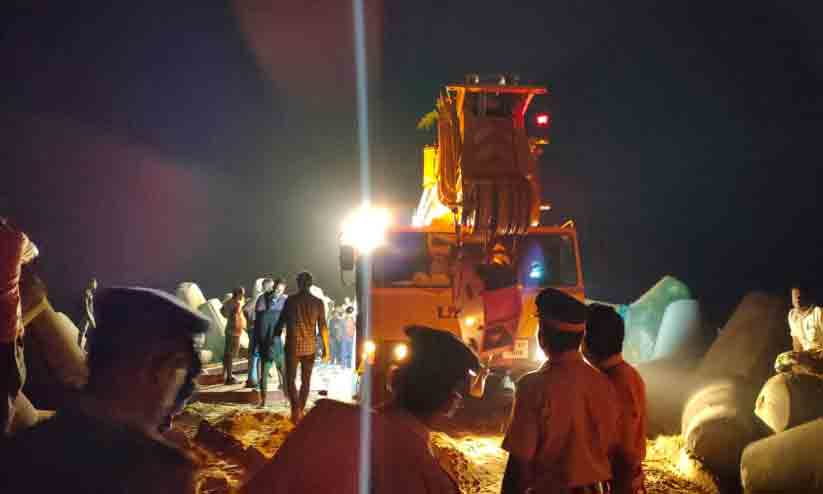 രക്ഷാപ്രവർത്തനങ്ങൾക്കായി വിഴിഞ്ഞം തുറമുഖത്തുനിന്ന് ഭീമൻ ക്രെയിന് കൊണ്ടുവന്നെങ്കിലും അത് പുലിമുട്ടിന്റെ അവസാനഭാഗത്ത് എത്തിക്കാൻ ഇതുവരെ കഴിഞ്ഞില്ല.