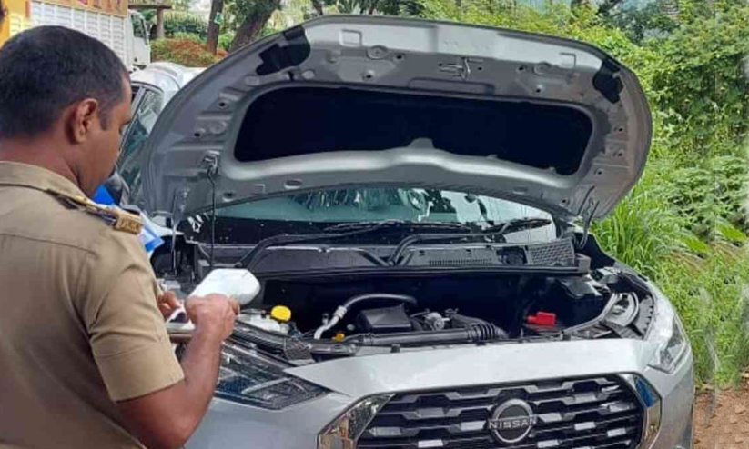 text_fieldsപിടികൂടിയ വാഹനത്തിൽ പരിശോധന നടത്തുന്ന ഉദ്യോഗസ്ഥർ