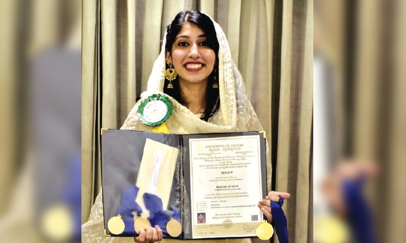 text_fieldsമൈസൂർ യൂനിവേഴ്സിറ്റിയില്നിന്ന് അഞ്ചു സ്വർണ മെഡല് നേടിയ നഹ്ല
