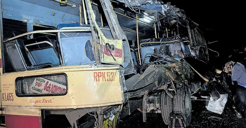പാലക്കാട് വടക്കഞ്ചേരിയിൽ ടൂറിസ്റ്റ് ബസ് കെ.എസ്.ആർ.ടി.സി ബസിലിടിച്ചു മറിഞ്ഞ് ഒമ്പത് മരണം