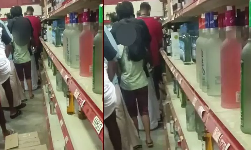 മദ്യ ശാലയിലെ വരിയിൽ പെണ്കുട്ടി; പിതാവിനെതിരെ കേസില്ല