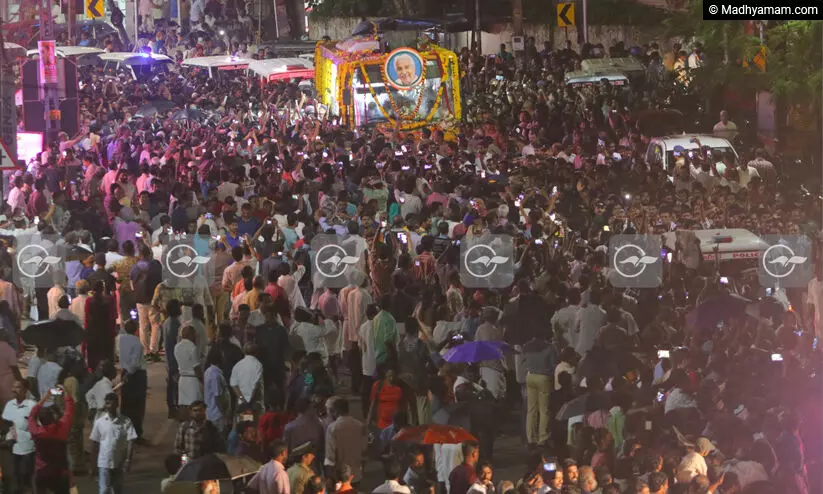 വിലാപയാത്ര തിരുനക്കരയിൽ; ഒരുനോക്ക് കാണാൻ ജനസാഗരം