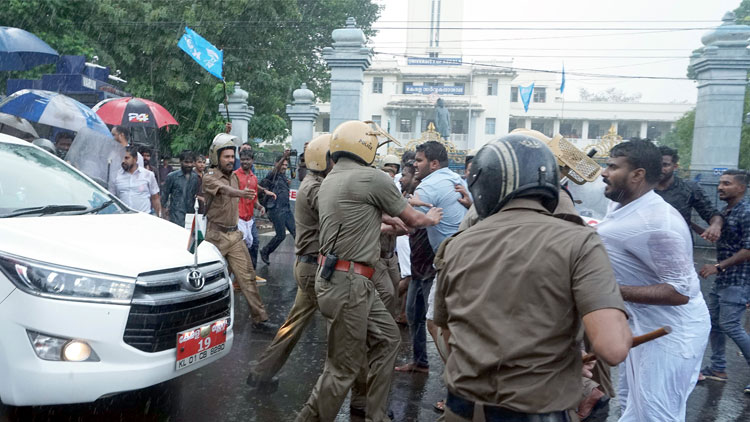 കെ.എസ്.യു പ്രവർത്തകർ സർവകലാശാല ആസ്ഥാനത്തിെൻറ മതിൽ ചാടിക്കടക്കാനും ശ്രമിച്ചു. സമരത്തിനിടെ അതുവഴി കടന്നുവന്ന മന്ത്രി കെ. രാജുവിെൻറ കാർ തടയാൻ ശ്രമമുണ്ടായെങ്കിലും പൊലീസ് ഏറെ പണിപ്പെട്ട് മന്ത്രിയെ കടത്തിവിട്ടു. സമരങ്ങളെ തുടർന്ന് നഗരത്തിലെ ഗതാഗതം താറുമാറായി. കോൺഗ്രസിെൻറ നിയമസഭ മാർച്ചിനിെട പ്രവര്ത്തകർ ബാരിക്കേഡുകൾ തകർക്കാൻ ശ്രമിച്ചതോടെ പൊലീസ് ജലപീരങ്കി പ്രയോഗിച്ചു. ഒരുപ്രവര്ത്തകന് പരിക്കേറ്റു. ഷാഫി പറമ്പില് എം.എല്.എയെ മര്ദിച്ചശേഷം വിരല് കടിച്ചുമുറിച്ച പൊലീസ് ഉദ്യോഗസ്ഥരുടെ നടപടി ഈ സര്ക്കാറിെൻറ പ്രാകൃത സംസ്കാരമാണ് വെളിവാക്കുന്നതെന്ന് മാർച്ച് ഉദ്ഘാടനം ചെയ്ത ഷാനിമോള് ഉസ്മാന് എം.എല്.എ പറഞ്ഞു. എം. വിന്സൻറ് എം.എല്.എ, കെ.എസ്. ശബരീനാഥൻ എം.എൽ.എ, ഡി.സി.സി പ്രസിഡൻറ് നെയ്യാറ്റിന്കര സനല്, എം.എ. ലത്തീഫ് അടക്കമുള്ളവർ നേതൃത്വം നൽകി.