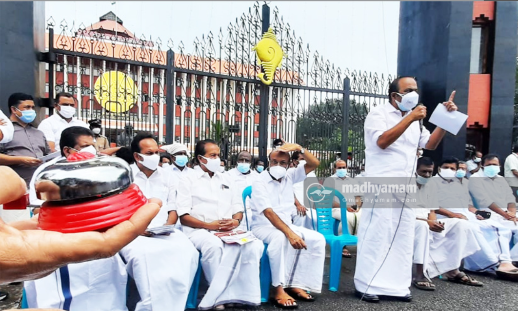 'ക്യാപ്റ്റനാണെങ്കിൽ മുഖ്യമന്ത്രി സത്യം തുറന്നു പറയണം'; സഭാ കവാടത്തിൽ 'അടിയന്തര പ്രമേയം' പ്രതീകാത്മകമായി അവതരിപ്പിച്ച് പ്രതിപക്ഷം