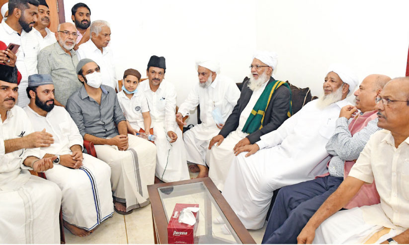 സ്വീകരിക്കാൻ പാണക്കാട്ടെ പുതിയ കാരണവർ സാദിഖലി ശിഹാബ് തങ്ങളും സഹോദരങ്ങളും മക്കളും സമസ്ത നേതാക്കളും. കോലായയിൽ മൗലിദ് പാരായണവും പ്രാർഥനയും നടക്കുമ്പോൾ സമസ്ത കേരള ജംഇയ്യത്തുൽ ഉലമ പ്രസിഡന്റ് മുഹമ്മദ് ജിഫ്രി മുത്തുക്കോയ തങ്ങൾക്കും ജനറൽ സെക്രട്ടറി പ്രഫ. കെ. ആലിക്കുട്ടി മുസ്ലിയാർക്കും ഇടയിലായി കാന്തപുരം ഇരുന്നു. എല്ലാത്തിനും നേതൃത്വം നൽകി വീട്ടുകാരനെപ്പോലെ മുസ്ലിം ലീഗ് ദേശീയ ജനറൽ സെക്രട്ടറി പി.കെ. കുഞ്ഞാലിക്കുട്ടിയും.