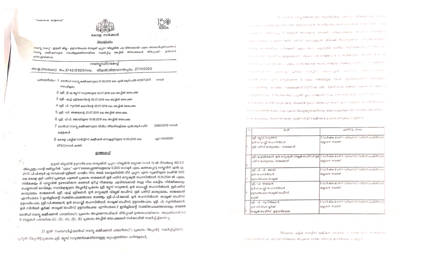 രാജകുമാരി ഭൂ പതിവ് കാര്യാലയം മുൻ ഡെപ്യൂട്ടി തഹസിൽദാർ ജ്യൂസ് റാവുത്തർ, മുൻ സ്പെഷ്യൽ വില്ലേജ് ഓഫീസർ എച്ച്. ശ്രീകുമാർ എന്നിവർക്ക് മൂന്ന് വാർഷിക വേതന വർധനവ് തടഞ്ഞു. ഉടുമ്പൻചോല മുൻ തഹസിൽദാർ പി.പി ജോയ്, മുൻ ഡെപ്യൂട്ടി തഹസിൽദാർ ഡി. അജയൻ, താലൂക്ക് ഓഫീസിലെ മുൻ സീനിയർ ക്ലർക്ക് പി.സുനിൽകുമാർ എന്നിവരുടെ രണ്ട് വാർഷിക വേതന വർധനവും തടഞ്ഞു. ലാൻഡ് റവന്യൂ കമ്മീഷണറുടെ റിപ്പോർട്ടിൻെറയും ഹിയറിങ് വേളയിലെ വാദങ്ങളുടെയും അന്വേഷണ ഉദ്യോഗസ്ഥരുടെ റിപ്പോർട്ടിൻെറയും അടിസ്ഥാനത്തിലാണ് നടപടി.