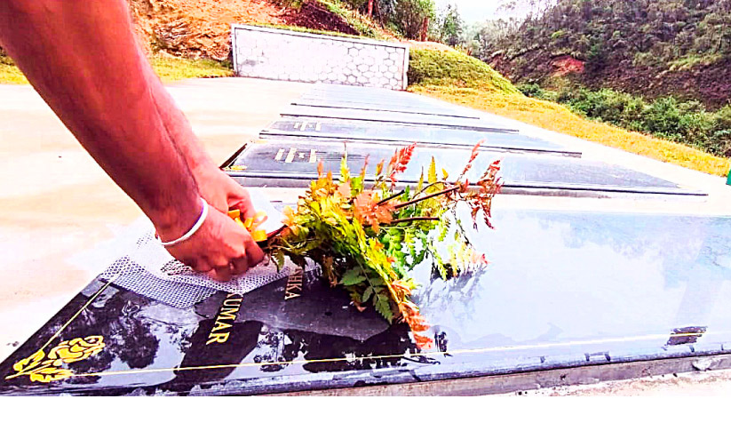 പെട്ടിമുടി -ഇടമലക്കുടി റോഡിനോട് ചേർന്ന കുറച്ച് ഭാഗത്ത് മാത്രം വലിയൊരു മൺകൂനയുണ്ട്. ഇതിന് താഴെയാണ് ഇനിയും മൃതദേഹംപോലും ലഭിച്ചിട്ടില്ലാത്ത നാലുപേരുടെ ബന്ധുക്കൾ ഉദകക്രിയ ചെയ്യാൻ ഒരുക്കിയ സ്ഥലം. ഇവിടെ പൂച്ചെടികൾ െവച്ചുപിടിപ്പിച്ചും പൂക്കൾ വിതറിയും അലങ്കരിച്ചിട്ടുണ്ട്. റോഡിൽ സ്ഥാപിച്ച കൊടിമരത്തിൽ പിടിച്ച് താഴേക്ക് നോക്കി നെടുവീർപ്പിടുന്ന കുറച്ചാളുകൾ എപ്പോഴുമുണ്ട് ഇവിടെ.