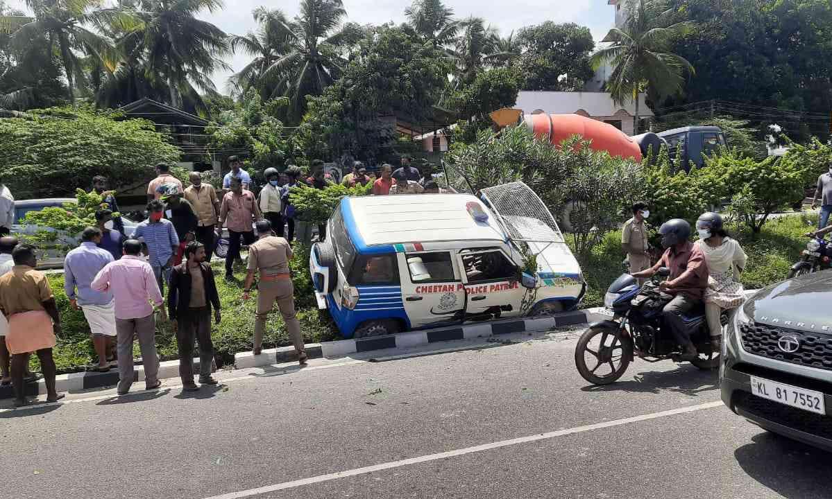 ആക്കുളം ബൈപാസിൽ പൊലീസ് ജീപ്പ് മറിഞ്ഞു രണ്ട് പേർക്ക് പരിക്ക്