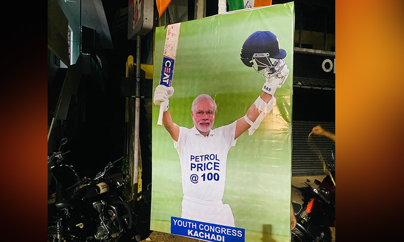 പെട്രോൾ വില: മോദിയുടെ ചിത്രമുള്ള പ്രതിഷേധ ബോർഡ് പൊലീസ് നീക്കി; 100 എണ്ണം സ്ഥാപിക്കുമെന്ന് യൂത്ത് കോൺഗ്രസ്