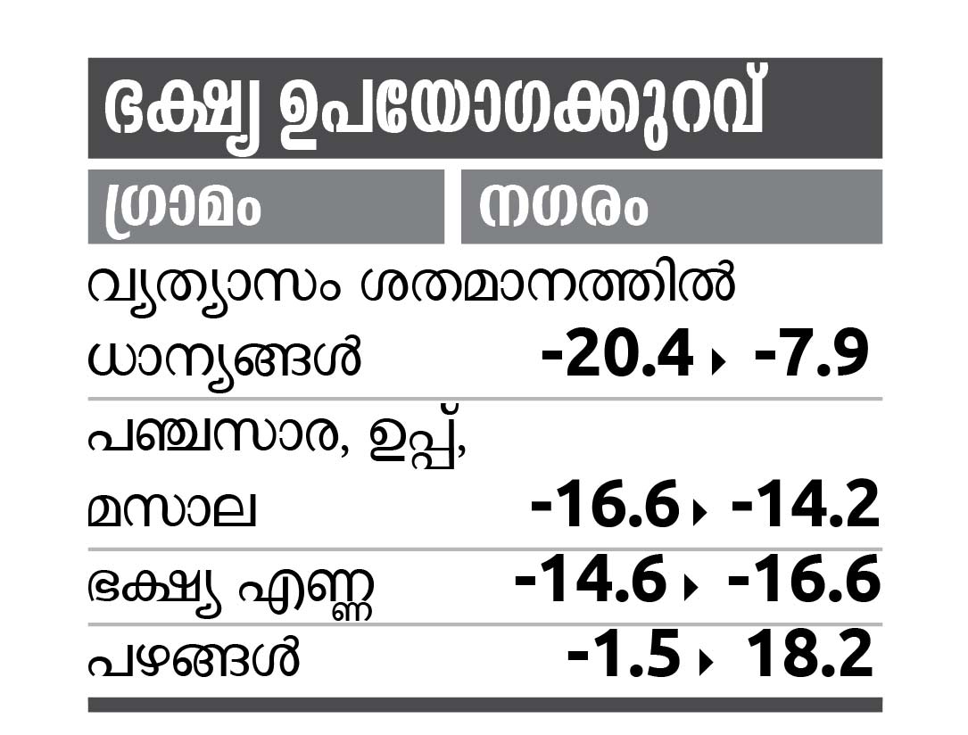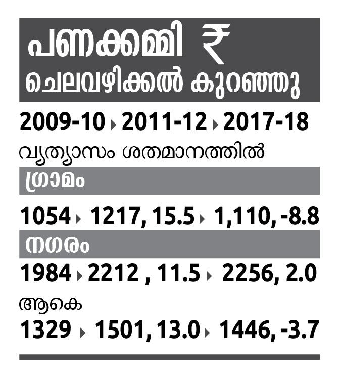 ഗ്രാമീണമേഖലയിൽ ചെലവാക്കൽ തുകയിൽ 8.8 ശതമാനമാണ് കുറവുണ്ടായത്. എന്നാൽ, നഗരങ്ങളിൽ ഇതേ തുകയിൽ രണ്ട് ശതമാനം വർധനയുണ്ടായിട്ടുണ്ട്.2011-12 കാലയളവിൽ ഗ്രാമങ്ങളിൽ ജനങ്ങൾ ഭക്ഷണത്തിനായി പ്രതിമാസം 643 രൂപ ചെലവഴിച്ചിരുന്നിടത്ത് 2017-18 ആയപ്പോേഴക്കും 580 രൂപയിലേക്ക് കുറഞ്ഞു.
