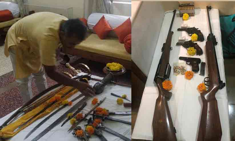 തോക്കുകളും വടിവാളുകളും പൂജിച്ച് കലാപാഹ്വാനവുമായി പ്രതീഷ് വിശ്വനാഥ്