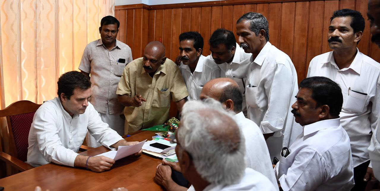 കെ.പി.സി.സി പ്രസഡൻറ് മുല്ലപ്പള്ളി രാമചന്ദ്രൻ, എ.െഎ.സി.സി ജനറൽ സെക്രട്ടറിമാരായ കെ.സി. വേണുഗോപാൽ, മുകുൾ വാസ്നിക്, പ്രതിപക്ഷ നേതാവ് രമേശ് ചെന്നിത്തല, മുസ്ലിം ലീഗ് ഉന്നതാധികാര സമിതിയംഗം പാണക്കാട് സാദിഖലി ശിഹാബ് തങ്ങൾ, എൻ.ഡി. അപ്പച്ചൻ, പി.പി. ആലി, കെ.പി. അനിൽകുമാർ, എൻ. സുബ്രഹ്മണ്യൻ, ഡി.സി.സി പ്രസിഡൻറുമാരായ ഐ.സി. ബാലകൃഷ്ണൻ, വി.വി. പ്രകാശ്, കെ.പി.സി.സി ഭാരവാഹികളായ പി.സി. വിഷ്ണുനാഥ്, കെ. വിശ്വനാഥൻ, കെ.െക. അബ്രഹാം, മുസ്ലീം ലീഗ് ജില്ല ജനറൽ സെക്രട്ടറി കെ.കെ. അഹ്മദ് ഹാജി തുടങ്ങിയവർ രാഹുലിനൊപ്പം ഉണ്ടായിരുന്നു.