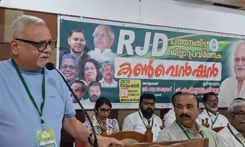 text_fieldsആർ ജെ ഡി പത്തനംതിട്ട ജില്ലാ കൺവെൻഷൻ ഉദ്ഘാടനം സംസ്ഥാന അധ്യക്ഷൻ എം.വി. ശ്രേയാംസ് കുമാർ നിർവഹിക്കുന്നു
