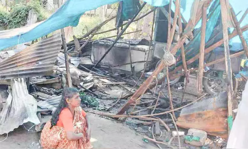 വഴിയോരത്തെ പെട്ടിക്കടക്ക് സാമൂഹിക വിരുദ്ധർ തീയിട്ടു; പെരുവഴിയിലായി രോഹിണി