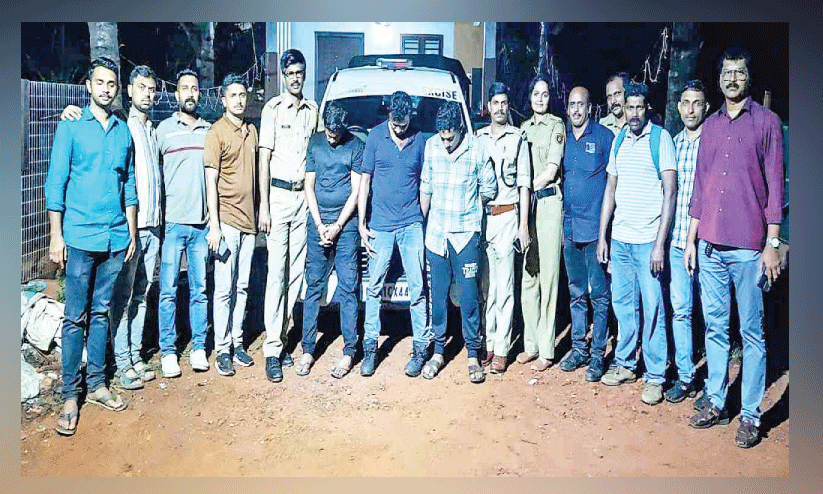 text_fieldsപിടികൂടിയ പ്രതികളുമായി എക്സൈസ് സംഘം