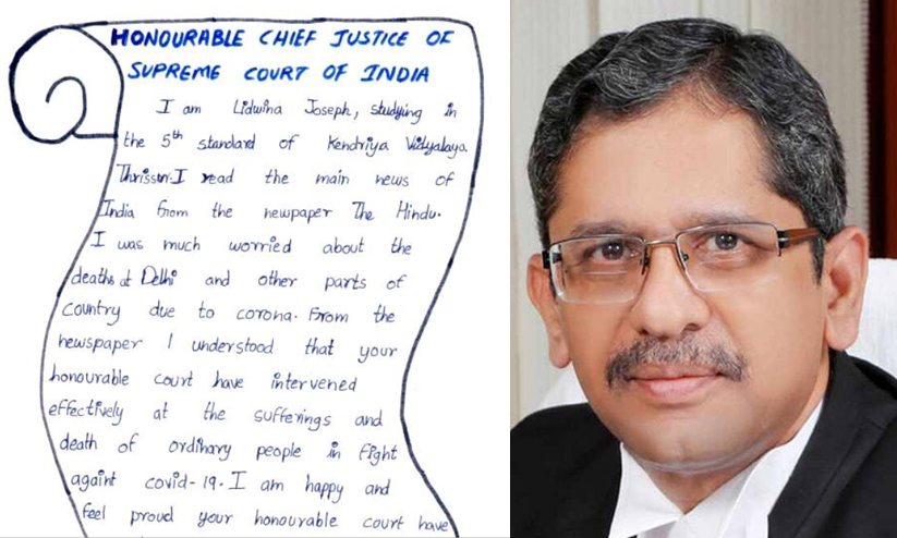 സുപ്രീംകോടതിക്ക് കത്തെഴുതിയ തൃശൂരിലെ അഞ്ചാം ക്ലാസുകാരിക്ക് ചീഫ് ജസ്റ്റിസിന്റെ അനുമോദനം