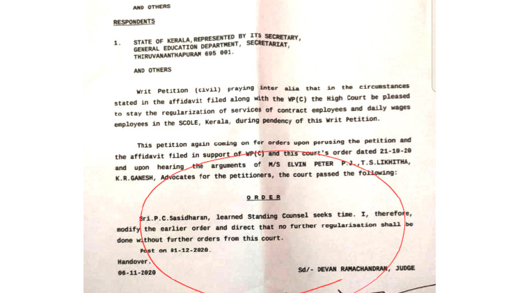 text_fieldsസ്കോൾ കേരളയിൽ സ്ഥിരപ്പെടുത്തൽ തടഞ്ഞ് ഹൈകോടതി പുറപ്പെടുവിച്ച ഉത്തരവ്