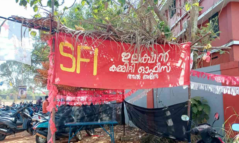 സ്കൂൾ ഗ്രൗണ്ട് കൈയ്യേറി എസ്.എഫ്.ഐ താൽക്കാലിക ഓഫിസ് നിർമിച്ചതായി പരാതി