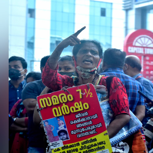 സംഭവത്തിൽ നാളിതുവരെ കേസ് രജിസ്റ്റർ ചെയ്യാനോ പ്രതികളെ പിടികൂടാനോ പൊലീസിന് കഴിഞ്ഞിട്ടില്ല. ഭർത്താവും മകളും നഷ്ടപ്പെട്ടതോടെ കഴിഞ്ഞ അഞ്ച് വർഷമായി ഒറ്റക്കാണ് സമരം. ആദ്യകാലങ്ങളിൽ മുത്തുകൾ കോർത്ത് മാല തുന്നി കിട്ടുന്ന പണം കൊണ്ടായിരുന്നു വിശപ്പടക്കിയിരുന്നത്. വെയിലും മഴയും പട്ടിണിയും ശരീരത്തെ തളർത്തിയതോടെ ഇതിനും കഴിയാതെയായി.
