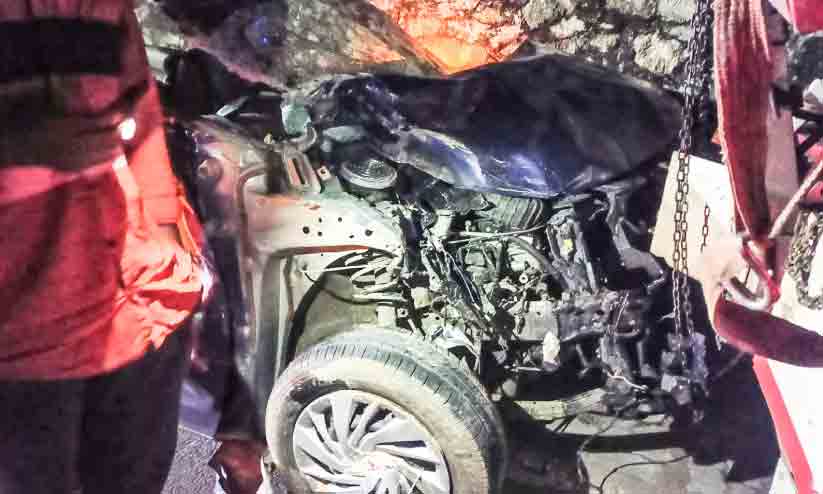 മണ്ണാറക്കുളഞ്ഞിയിൽ മിനിബസുമായി കൂട്ടിയിടിച്ച് തകർന്ന ശബരിമല തീർഥാടകരുടെ കാർ