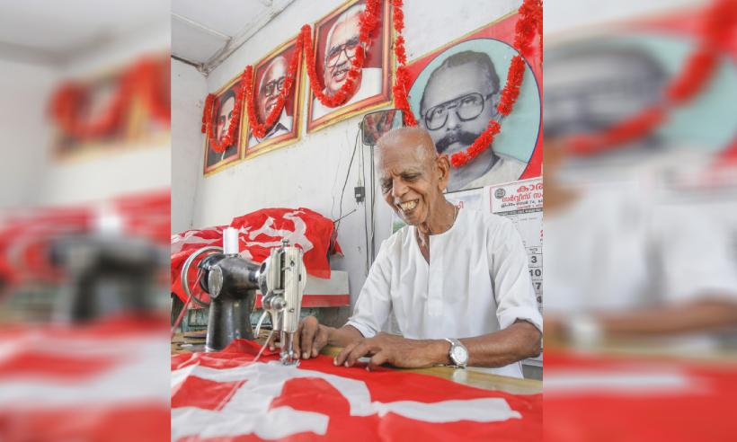 കോട്ടയം: തങ്കെൻറ മനസ്സുപോലെയാണ് കടയും; ഉള്ളിൽ നിറയെ ചുവപ്പ്. തെരഞ്ഞെടുപ്പ് എത്തിയാൽ മറ്റ് നിറങ്ങളെല്ലാം ചെങ്കൊടിക്ക് വഴിമാറുന്നതാണ് കോട്ടയം വേളൂർ കല്ലുപുരയ്ക്കൽ ജങ്ഷനിലെ തയ്യൽക്കടയിലെ പതിവ്. ഇത്തവണയും വേളൂർ കളപ്പുരയിൽ കെ.കെ. തങ്കെൻറ പതിവുരീതികൾക്ക് മാറ്റമില്ല. ചുവപ്പിൽ അരിവാൾ ചുറ്റിക തുന്നിച്ചേർക്കുന്ന തിരക്കിലാണ് 83െൻറ 'ക്ഷീണ'ത്തിനിടയിലും തങ്കൻ.