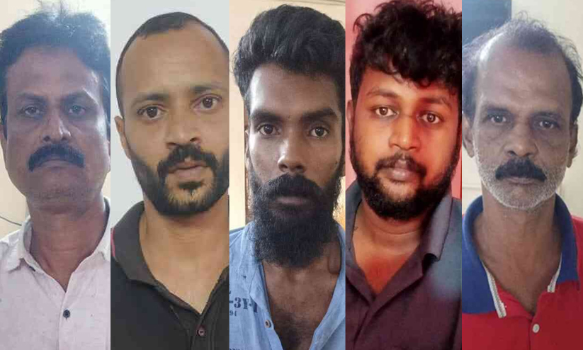 ആലപ്പുഴ തുമ്പോളിയിൽ താമസിച്ചു വരികയായിരുന്ന കോട്ടയം പൂവരണി കൊട്ടയ്ക്കാട്ട് വീട്ടിൽ ജോയ് എന്ന ജോസഫ് (54), ആലപ്പുഴ കലവൂർ പള്ളിപ്പറമ്പിൽ വീട്ടിൽ സെബാനെന്ന് വിളിക്കുന്ന സെബാസ്റ്റ്യൻ (32), അടിമാലി മാന്നാംക്കണ്ടം മംഗലത്ത് വീട്ടിൽ രമേശ് (27), അടിമാലി മാന്നാംക്കണ്ടം നന്ദനം വീട്ടിൽ വിഷ്ണു (30), പത്തനംതിട്ട ഓമല്ലൂർ വാഴമുട്ടം നെല്ലിക്കുന്നേൽ വീട്ടിൽ അമ്പി എന്ന ഗിരീഷ് (51) എന്നിവരെയാണ് കായംകുളം ഡിവൈ.എസ്.പി അലക്സ് ബേബിയുടെ നേതൃത്വത്തിലുള്ള പ്രത്യേക സംഘം പിടികൂടിയത്.