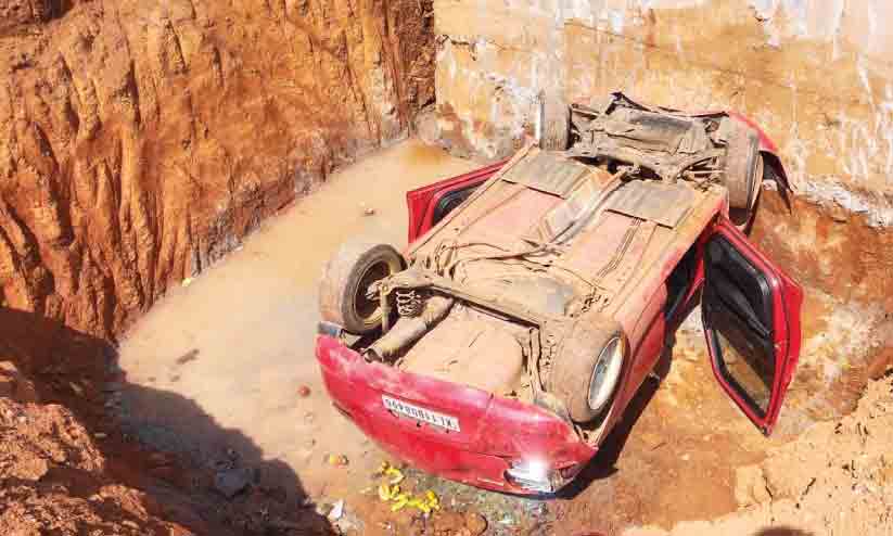 ദേശീയപാത വികസനത്തിന്റെ ഭാഗമായി നിർമിച്ച കുഴിയിലേക്ക് കാർ മറിഞ്ഞു