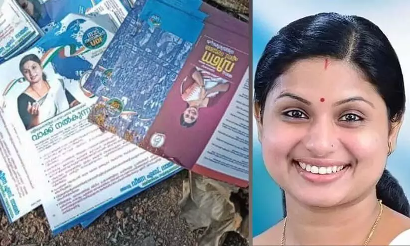 തിരുവനന്തപുരം: വട്ടിയൂര്ക്കാവിലെ യു.ഡി.എഫ് സ്ഥാനാർഥി വീണ എസ്. നായരുടെ വോട്ട് അഭ്യര്ത്ഥന നോട്ടീസുകളും ഉപേക്ഷിച്ച നിലയിൽ. പേരൂര്ക്കടയിലെ വാഴത്തോട്ടത്തിലാണ് നോട്ടീസുകള് കണ്ടെത്തിയത്. ഉപയോഗിക്കാത്ത പോസ്റ്ററുകൾ നേരത്തെ ആക്രിക്കടയിൽ കണ്ടെത്തിയിരുന്നു.