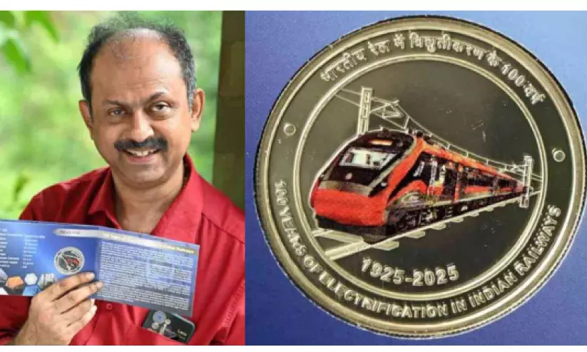 text_fieldsരാജ്യത്തെ ആദ്യ വര്ണ നാണയത്തിന്റെ പ്രൂഫ് സെറ്റുമായി ഷൈജു,, വന്ദേഭാരത് ട്രെയിനിന്റെ വര്ണ ചിത്രം ആലേഖനം ചെയ്ത വര്ണ നാണയം