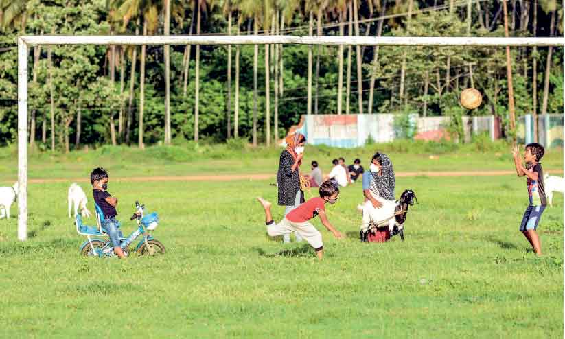 ഇക്കുറിയില്ല. കൂട്ടിലങ്ങാടിയിൽ വീടിന് മുൻവശത്തെ മൈതാനത്ത് എത്തിയ കുട്ടികൾ.