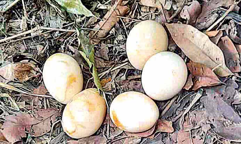 പുന്നയൂർക്കുളം ചമ്മന്നൂർ പള്ളി പരിസരത്ത് കണ്ടെത്തിയ മയിൽമുട്ടകൾ