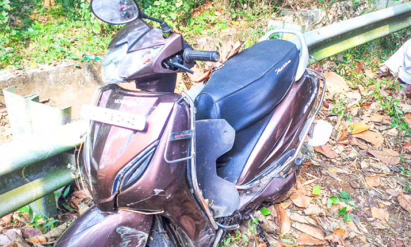 സ്കൂട്ടർ ഡിവൈഡറിൽ ഇടിച്ച് യാത്രക്കാരൻ തോട്ടിൽവീണു