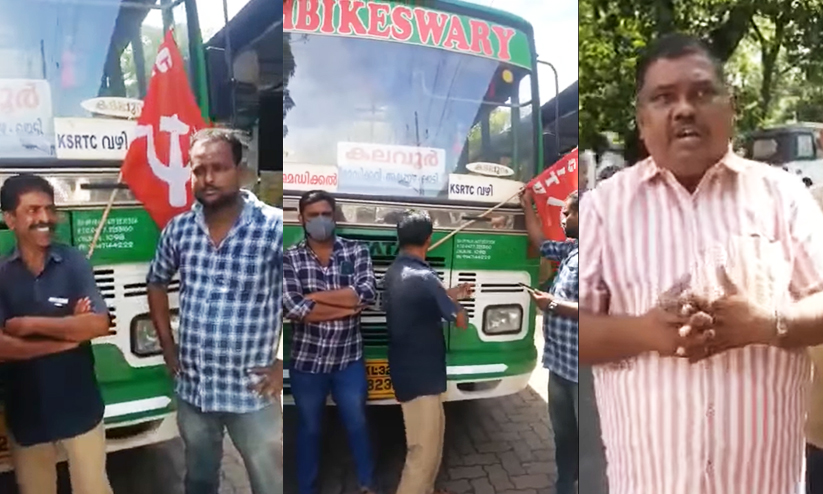 'അംബികേശ്വരി' ബസ് തടഞ്ഞ് 'കൊടികുത്തി' സമരം നടത്തിയ സി.ഐ.ടി.യു നേതാവിന്റെ പ്രസംഗം വൈറൽ