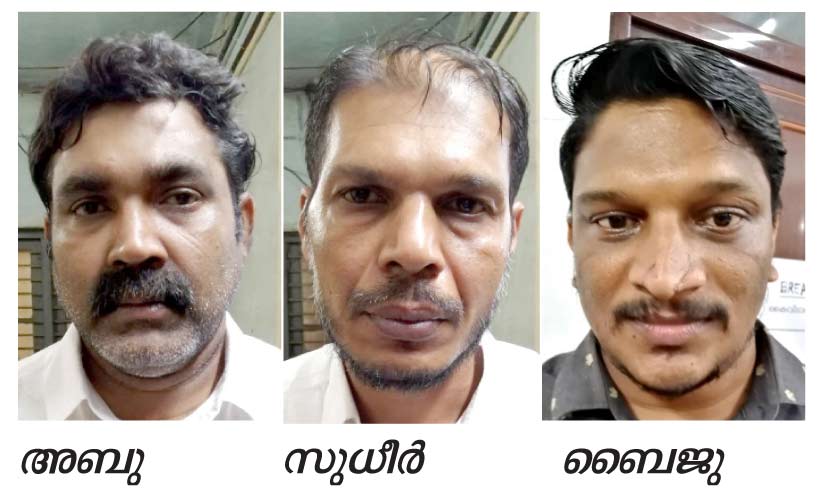 കേസില് നേരേത്ത അറസ്റ്റിലായ പ്രധാന പ്രതി നിസാറിെൻറ കച്ചവട പങ്കാളിയാണ് അബു. സംഭവത്തിനുശേഷം പ്രതികള് രക്ഷപ്പെട്ടത് ബൈജുവിെൻറയും അബുവിെൻറയും വാഹനത്തിലാണെന്ന് പൊലീസ് പറഞ്ഞു. അബൂബക്കറിനെയും സുധീറിനെയും അങ്കമാലിയില്നിന്നും ബൈജുവിനെ വല്ലത്തുനിന്നുമാണ് അറസ്റ്റ് ചെയ്തത്. പ്രതികള് രക്ഷപ്പെടാന് ശ്രമിച്ച രണ്ട് വാഹനവും കസ്റ്റഡിയിലെടുത്തു.