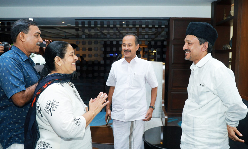 തൃക്കാക്കര: സാദിഖലി തങ്ങളെ സന്ദർശിച്ച് ലീഗ് നേതൃയോഗത്തിൽ പങ്കെടുത്ത് ഉമ തോമസ്