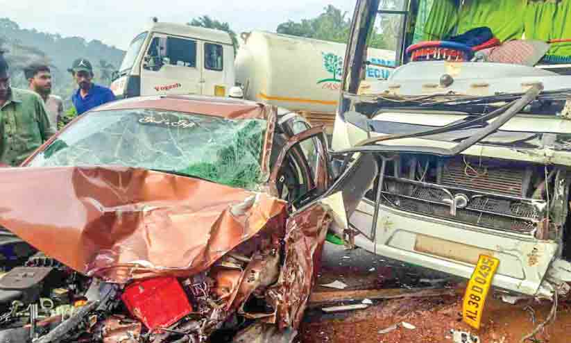 text_fieldsദേശീയപാത കാക്കഞ്ചേരിക്ക് സമീപം കൂട്ടിയിടിച്ച കാറും ടൂറിസ്റ്റ് ബസും