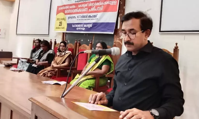 text_fieldsകൊച്ചി: ട്രാന്സ്ജെന്ഡര് സൗഹൃദപരമായ കേരളം വിഭാവനം ചെയ്യുക എന്ന ലക്ഷ്യത്തോടെ ട്രാന്സ്ജെന്ഡര് ക്ഷേമം എന്ന വിഷയത്തില് കോളജ് വിദ്യാര്ഥികൾക്ക് ബോധവത്കരണ ക്ലാസ് നടത്തി. അഡീഷണല് ജില്ലാ ജഡ്ജിയും കെല്സ(സംസ്ഥാന ലീഗല് സര്വീസസ് അതോറിട്ടി) മെമ്പര് സെക്രട്ടറിയുമായ കെ.ടി നിസാര് അഹമ്മദ് പരിപാടി ഉദ്ഘാടനം ചെയ്തു.