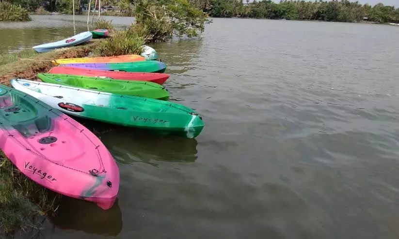 text_fieldsജല കായിക വിനോദമായ കയാക്കിങ് സജീവമായ വക്കം പണയിൽ കടവ്