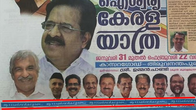 text_fieldsകാസർകോട്: പ്രതിപക്ഷ നേതാവ് രമേശ് ചെന്നിത്തല നയിക്കുന്ന ഐശ്വര്യ കേരള യാത്രയുടെ 'വീക്ഷണം' പത്ര പരസ്യത്തിലെ 'ആദരാഞ്ജലികൾ' വിവാദമായി. ഇന്ന് പ്രസിദ്ധീകരിച്ച പത്രത്തിലാണ് ആശംസകളോടെ എന്നതിന് പകരം 'ആദരാഞ്ജലികളോടെ' എന്ന് വന്നത്.