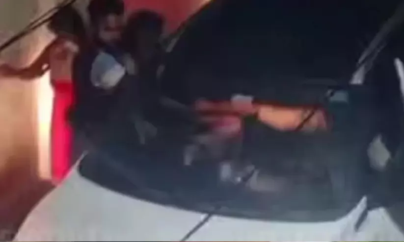 അച്ഛനെയും മകനെയും കാറിനൊപ്പം വലിച്ചിഴച്ചെന്ന പരാതിയിൽ ട്വിസ്റ്റ്; പരാതിക്കാർ കാർ തടഞ്ഞ് മർദിക്കുന്ന വിഡിയോ പുറത്തുവിട്ട് കുറ്റാരോപിതർ