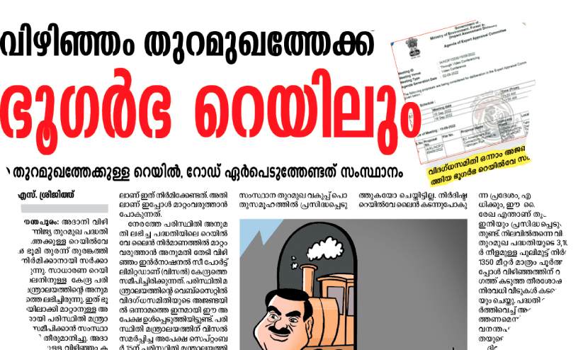 അപേക്ഷ മടക്കി കേന്ദ്രം: വിഴിഞ്ഞം തുറമുഖത്തേക്ക് ഭൂഗർഭ റെയിൽ