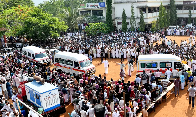 സ്കൂൾ ഗ്രൗണ്ടിൽ വളന്റിയർമാരുടെ അറിയിപ്പുകൾ അച്ചടക്കമുള്ള കുട്ടികളെപ്പോലെ അവർ അനുസരിച്ചു. മൃതദേഹങ്ങൾ ഒരു നോക്ക് കാണാൻ പൊള്ളുന്ന വേനൽച്ചൂടിനെ വകവെക്കാതെ മണിക്കൂറുകൾ വരിനിന്നു. അപ്പോഴും നൂറുകണക്കിനാളുകൾ സ്കൂൾ കവാടം കടന്നുവരുന്നുണ്ടായിരുന്നു. പൊതുദർശനം കഴിഞ്ഞ് 10.30ഓടെ മൃതദേഹങ്ങൾ വീടുകളിലേക്ക്...