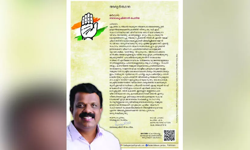 ക്യു.ആർ കോഡ് സ്കാൻ ചെയ്താൽ വോട്ട് അഭ്യർഥന;പുതുമയുമായി ബാലകൃഷ്ണന് പെരിയ