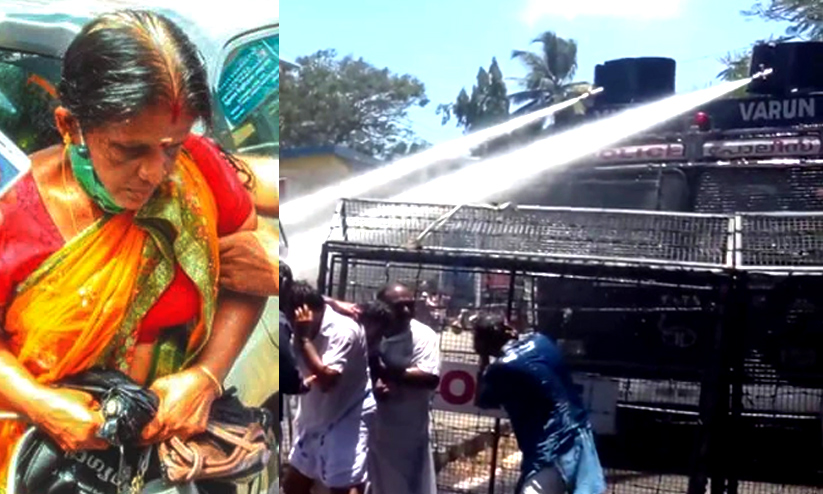 ജലപീരങ്കി ഉന്നംതെറ്റി പതിച്ചത് ലോട്ടറി വിൽപനക്കാരിയുടെ ദേഹത്ത്; തലക്ക് പരിക്ക്
